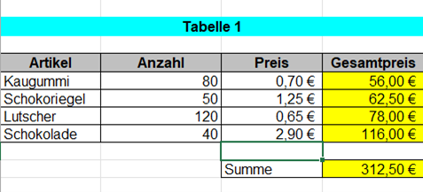 Inhalt unter anderem: Eingabe in Excel, Markieren und Löschen in Excel, Formatierungen (Rahmen und Schattierungen)